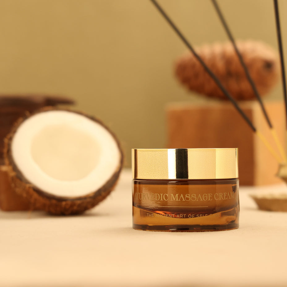 Organic Sesame oil, Ficus racemosa fruit oil, Gooseberry (Amla) oil, Vetiver powder, Sandalwood powder, Indian madder powder (Rubia Cordifolia), Pure Essential Oils of Sandalwood, Jasmine, Lemon, Geranium, Vetiver & Clary Sage, Saffron, Sodium Benzoate, Emulsifying Wax and Potassium Sorbate.